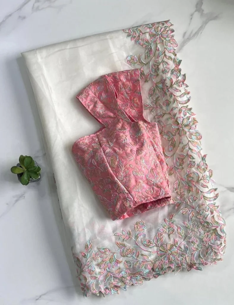 SOFT TABI ORGANZA WITH RICH EMBROIDERY WORK IN WHITE