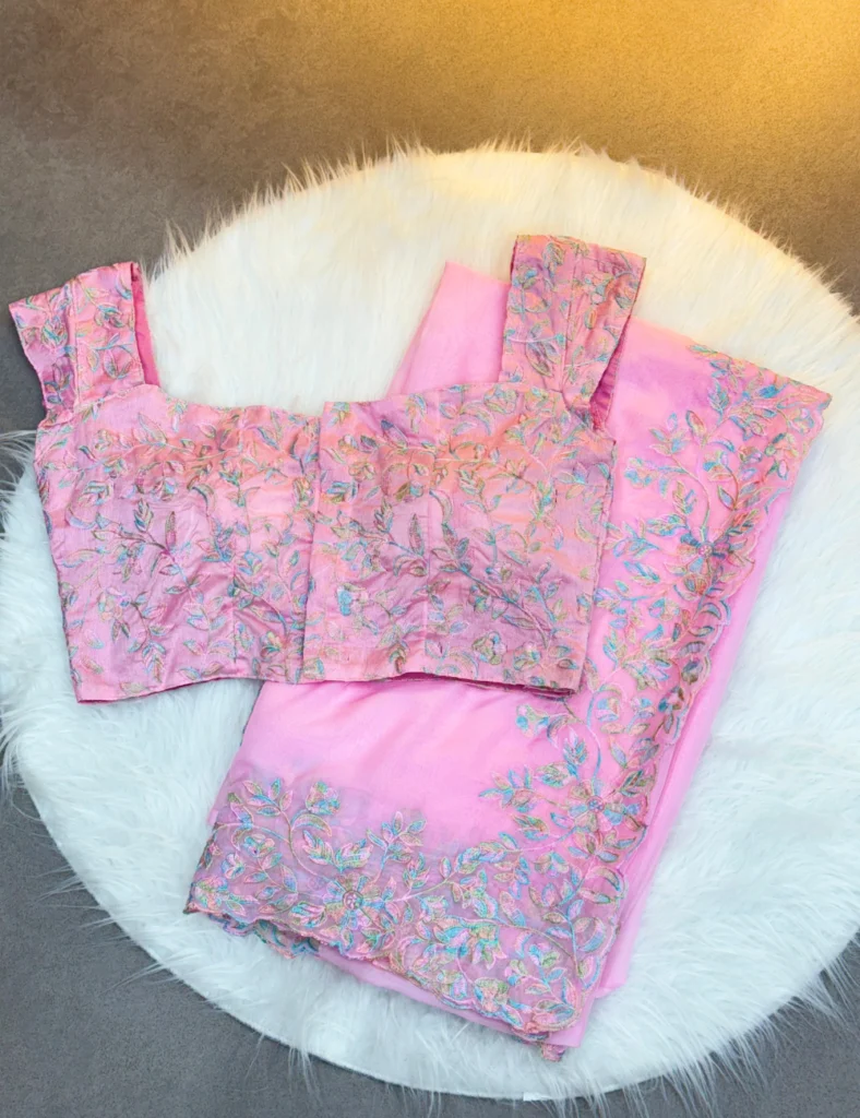 SOFT TABI ORGANZA WITH RICH EMBROIDERY WORK IN PINK
