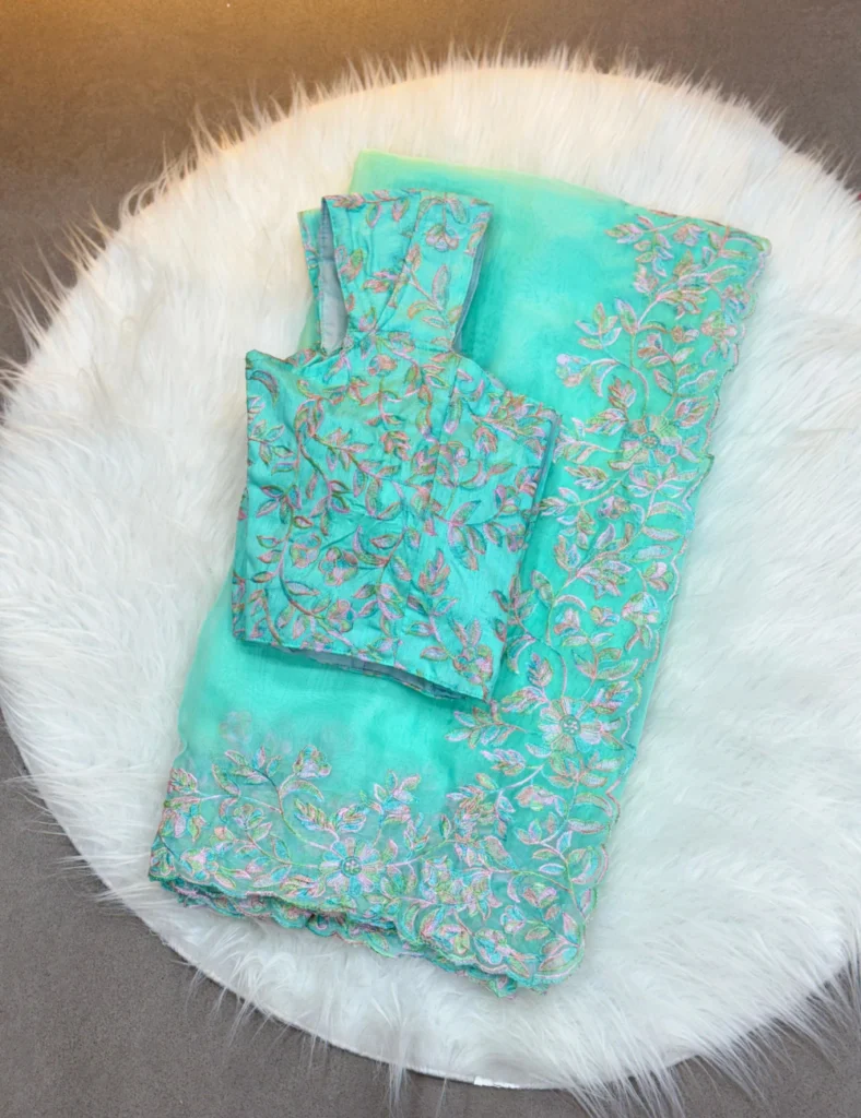 SOFT TABI ORGANZA WITH RICH EMBROIDERY WORK IN OCEAN TEAL