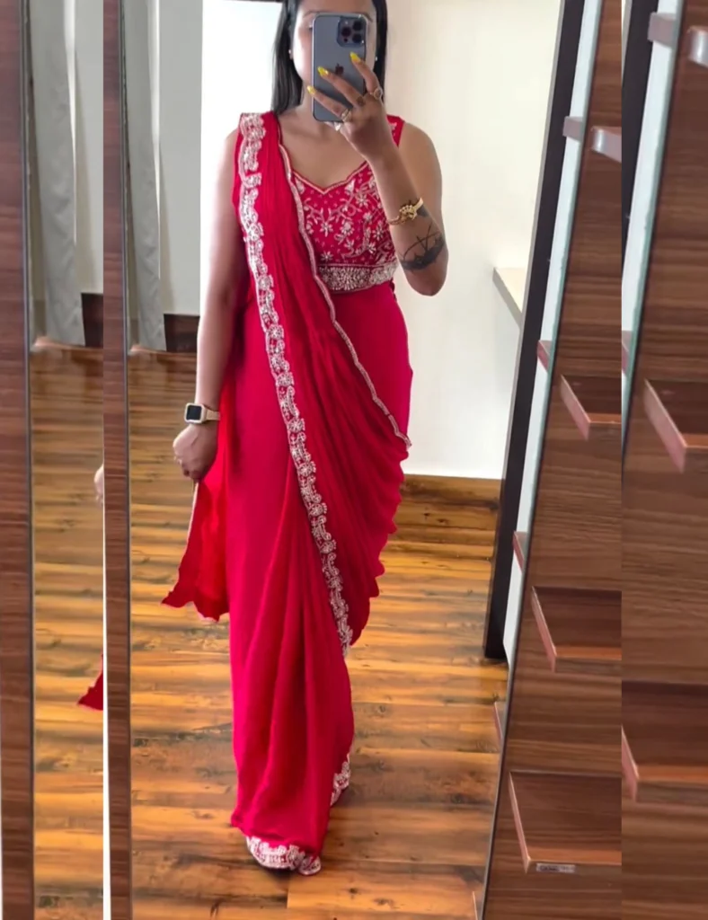Ready to wear saree (Pink) with Embroidery