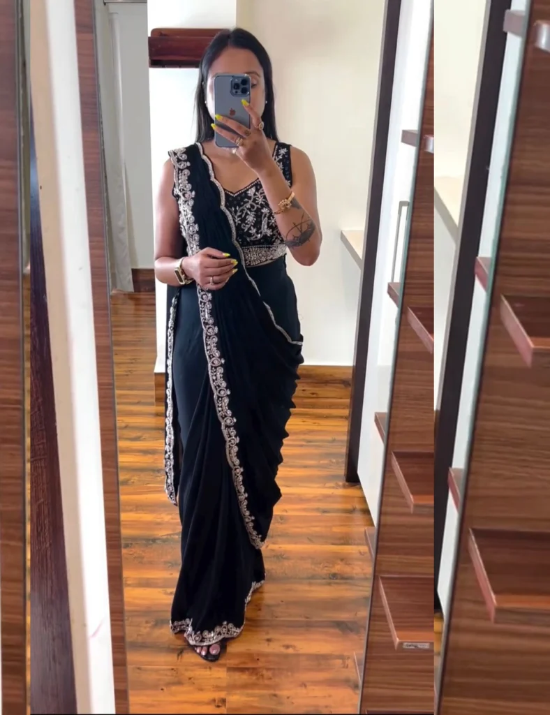 Ready to wear saree (Black) with Embroidery