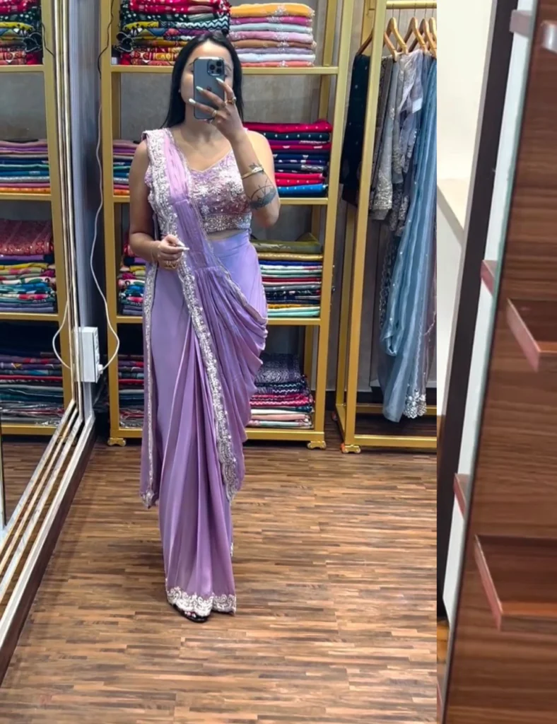Ready to wear saree (Lavender) with Embroidery