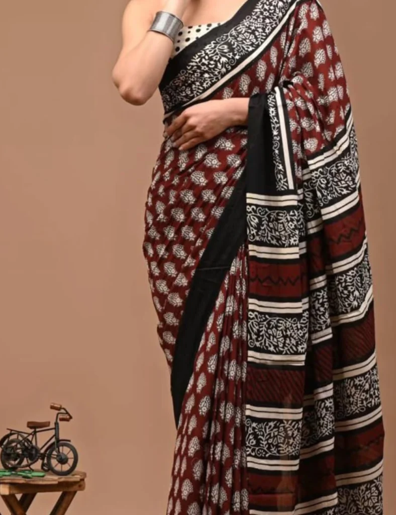 Mul Mul Cotton Saree in Marron