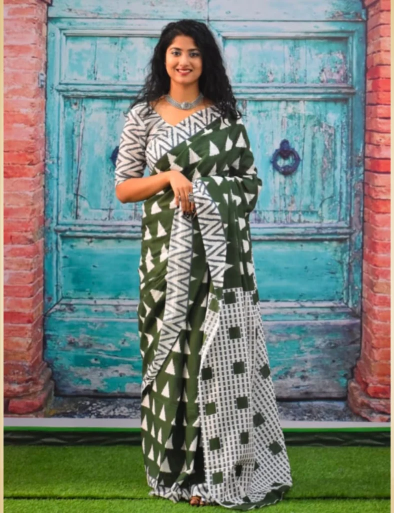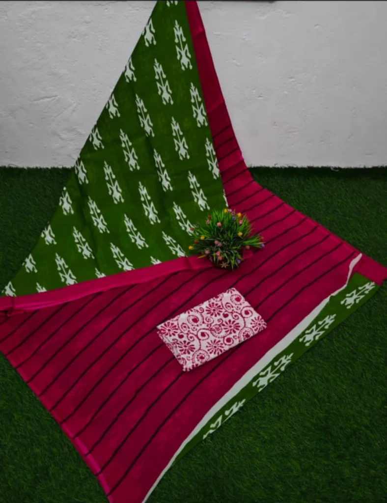 Mul Mul Cotton Saree in Green