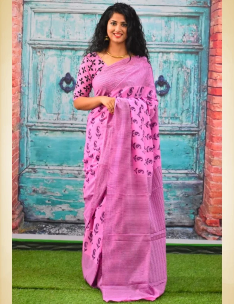 Mul Mul cotton saree in Pink