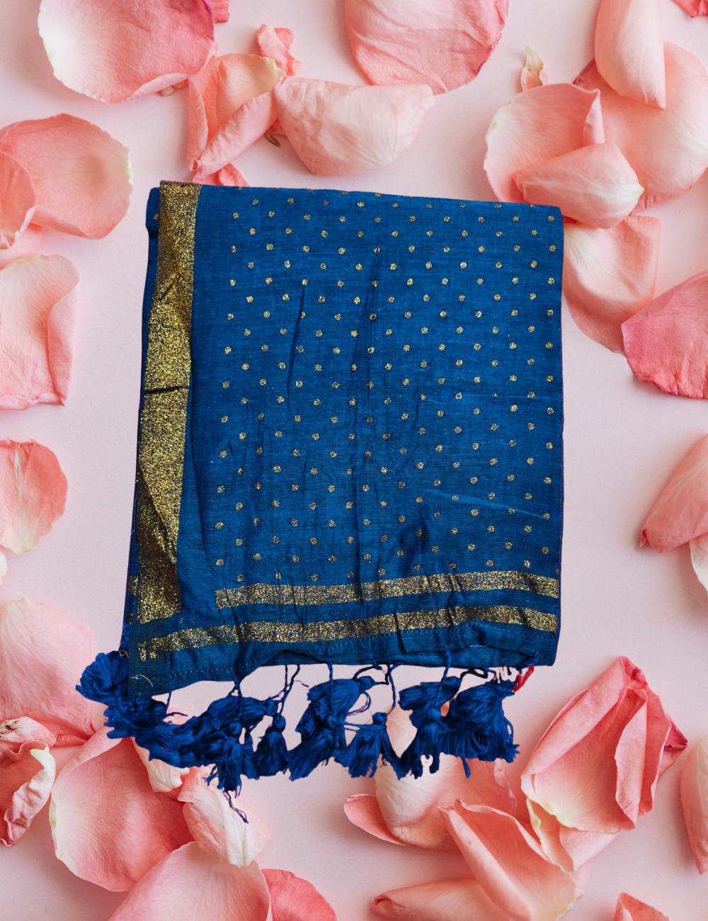 Beautiful Tinsel Dot work all over the saree.