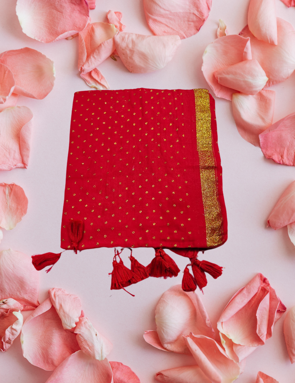 Beautiful Tinsel Dot work all over the saree.