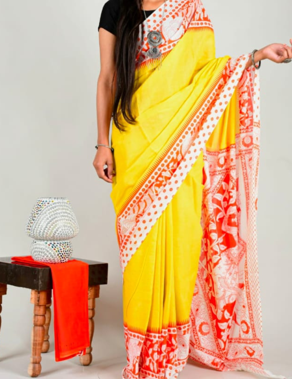 A Mul Mul Cotton Saree is a lightweight, soft, and breathable saree made from Mulmul cotton — a fine, delicate variety of cotton traditionally woven in India