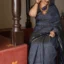 checked cotton sarees in Navy Blue