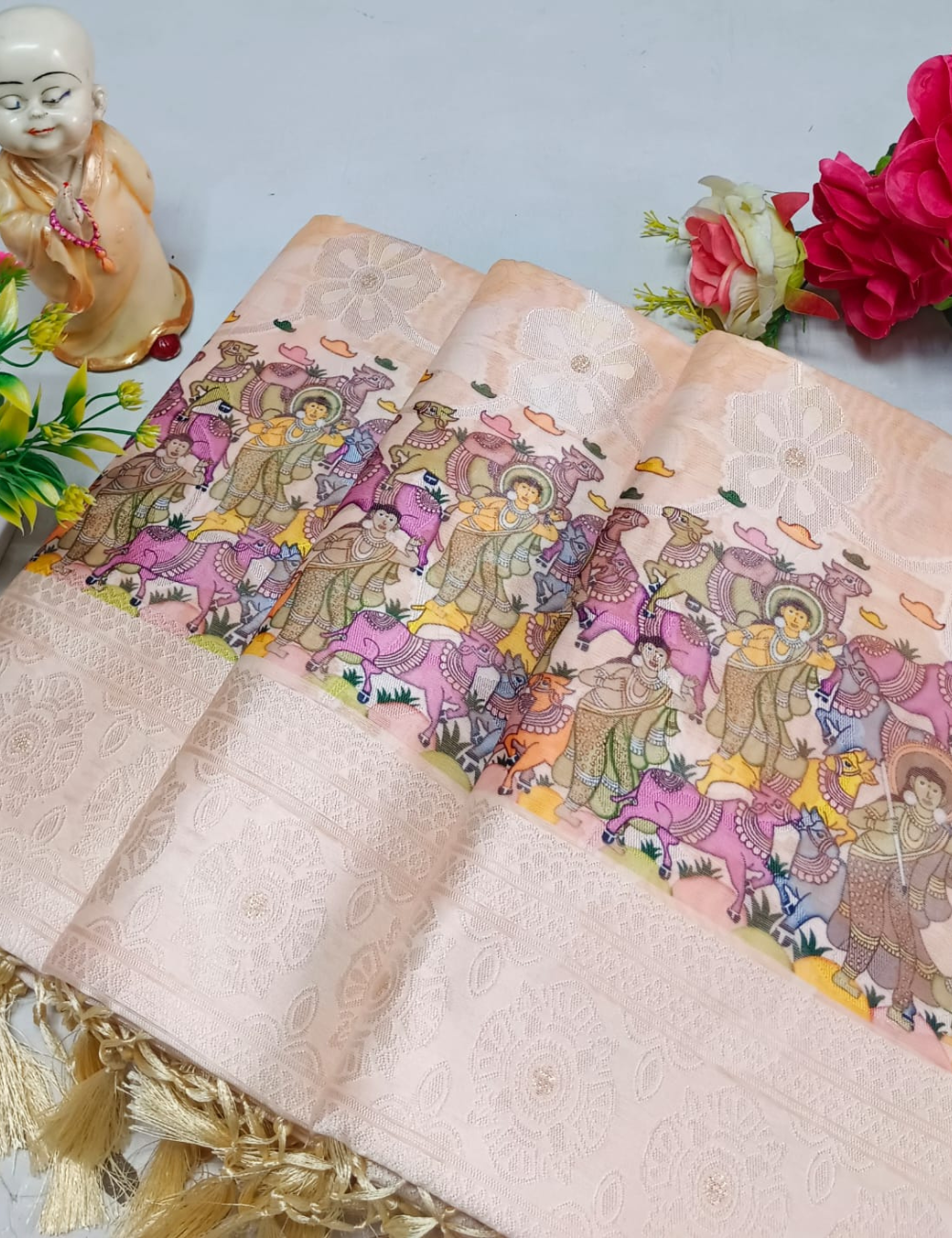 Premium Digital Floral Softy Saree In Peach Sandle Mix